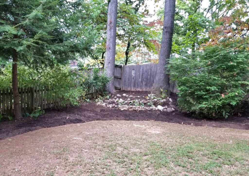 The makeover included redefining planting beds, pruning overgrowth, shaping bushes and trees, splitting and relocating plants, mulching, and creating interesting new focal points.